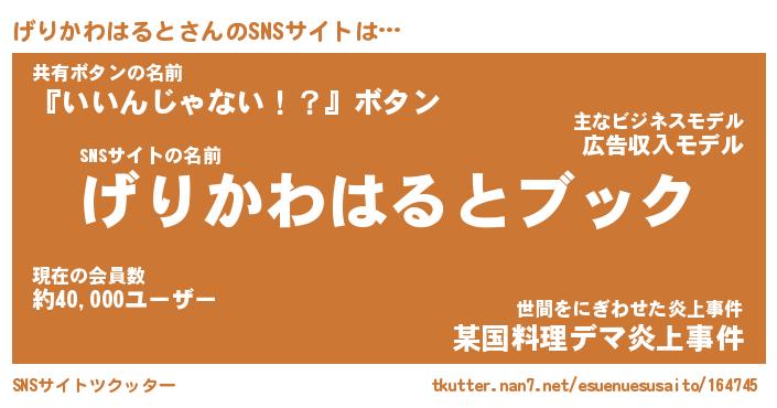 | 胡散臭い通販商品みたいなあだ名 | 『億万長者になれるブレスレット…その名も「げりかわはると」』 |