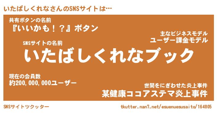 | 胡散臭い通販商品みたいなあだ名 | 『億万長者になれる霊験あらたかなお札…その名も「いたばしくれな」』 |