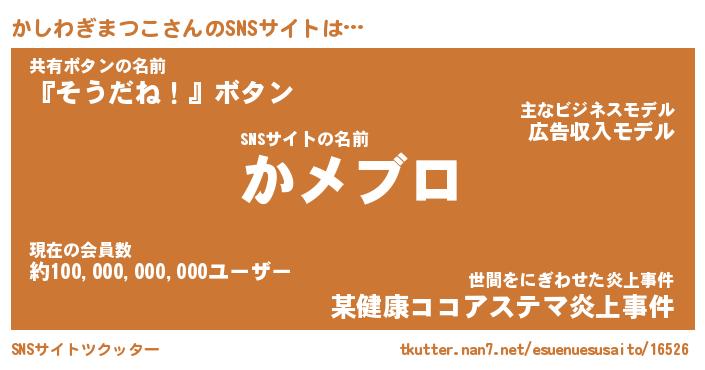 | 欧米人風あだ名 | 『マイケルかしわぎまつこ』 |