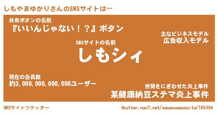 | 胡散臭い通販商品みたいなあだ名 | 『必ず成功するブレスレット…その名も「しもやまゆかり」』 |