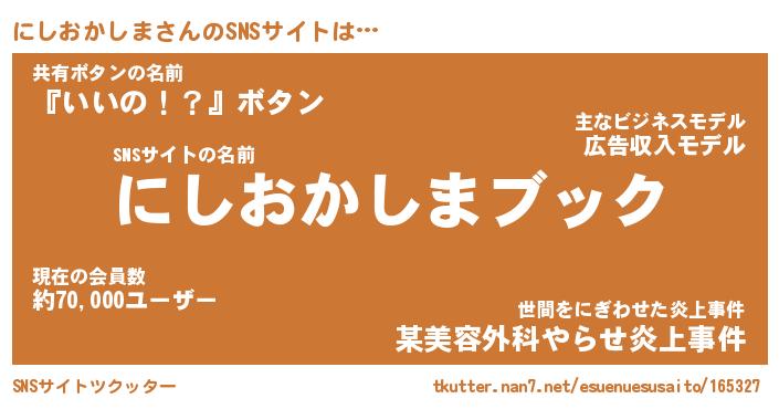| 男性向けラノベタイトル風あだ名 | 『ニシオカシマアートオンライン』 |