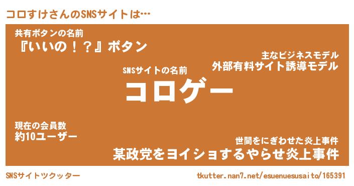 | 意味不明あだ名 | 『ペロリンコロすけ』『永久保存コロすけ』 |