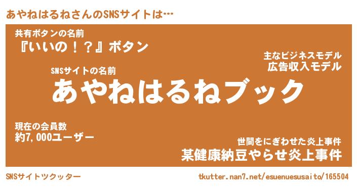 | 胡散臭い通販商品みたいなあだ名 | 『億万長者になれるブレスレット…その名も「あやねはるね」』 |