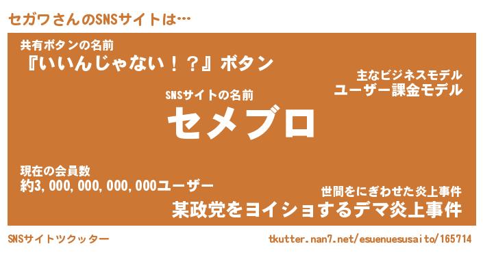 | 意味不明あだ名 | 『ペロリンセガワ』『セガワフォーエバー』 |
