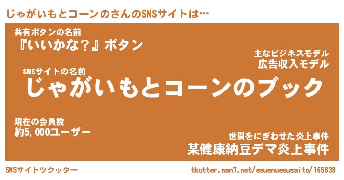 | ヒーロー風カッコイイあだ名 | 『スーパージャガイモトコーンノ』 |