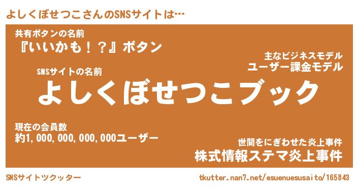 | 胡散臭い通販商品みたいなあだ名 | 『億万長者になれるブレスレット…その名も「よしくぼせつこ」』 |