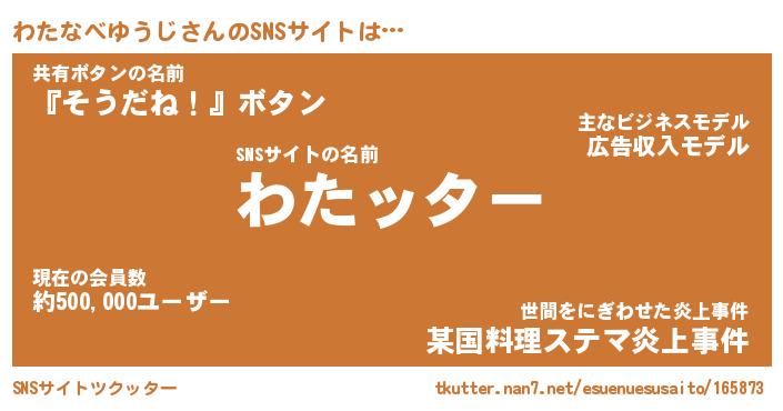 | 胡散臭い通販商品みたいなあだ名 | 『億万長者になれるブレスレット…その名も「わたなべゆうじ」』 |