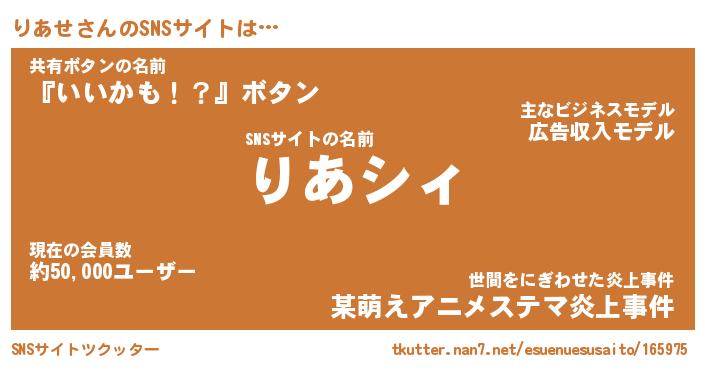 | 男性向けラノベタイトル風あだ名 | 『りあせの憂鬱』 |