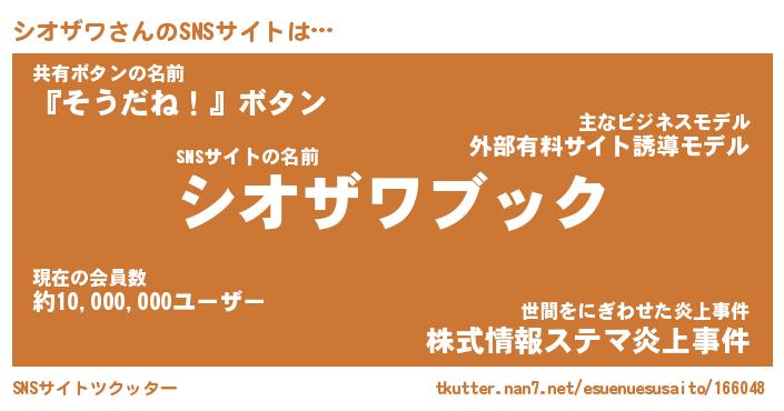 | ファンタジー風あだ名 | 『シオフェル』『エターナルシオザワー』 |