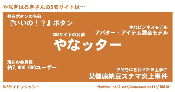 | 胡散臭い通販商品みたいなあだ名 | 『億万長者になれる霊験あらたかなお札…その名も「やなぎはるき」』 |