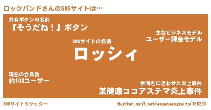 | ヘコむあだ名 | 『ロッふぇ~』『つくし』『ロッお』 |