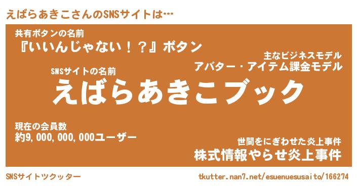 | 伝説のあだ名 | 『封印されしスナイパーえばらあきこ』 |