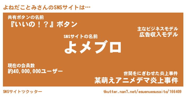 | ツイッター | よねだことみさんのツイッターID『katatsumuri_idle』 |