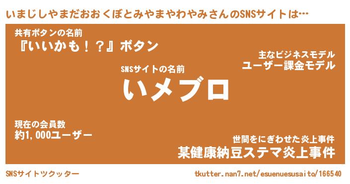| ヘコむあだ名 | 『いまもー』『なまこ酢』『いまを』 |