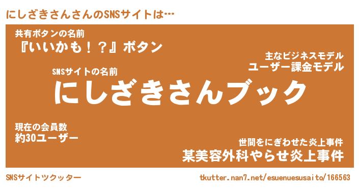 | ヘコむあだ名 | 『にしもー』『なまこ酢』『にしっぺ』 |