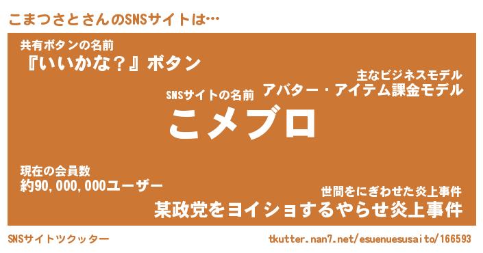 | ファンタジー風あだ名 | 『コマフェル』『エターナルコマツサトー』 |