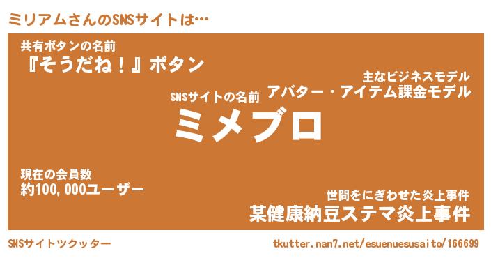 | 意味不明あだ名 | 『ペロリンミリアム』『永久保存ミリアム』 |