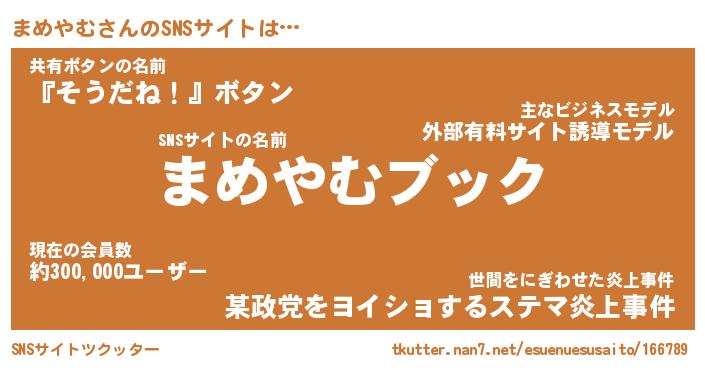 | 意味不明あだ名 | 『ペロリンまめやむ』『永久保存まめやむ』 |