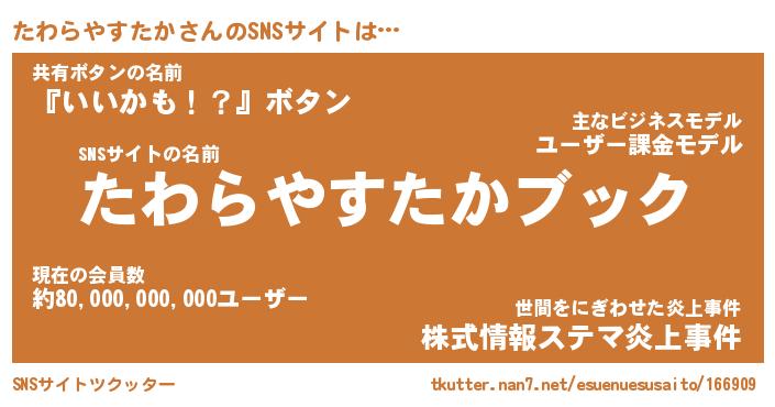 | 男性向けラノベタイトル風あだ名 | 『タワラヤスタカアートオンライン』 |