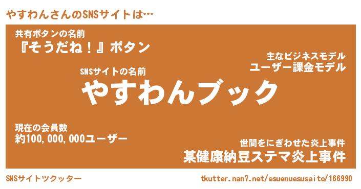 | ヘコむあだ名 | 『やすにゅー』『酢こんぶ』 |