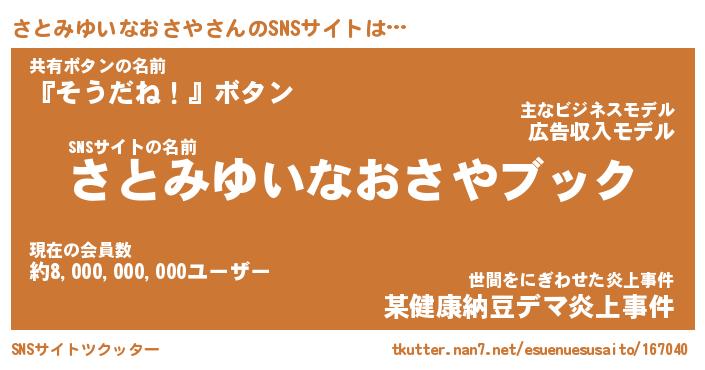 | 胡散臭い通販商品みたいなあだ名 | 『億万長者になれるブレスレット…その名も「さとみゆいなおさや」』 |