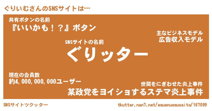 | 胡散臭い通販商品みたいなあだ名 | 『億万長者になれるブレスレット…その名も「ぐりいむ」』 |