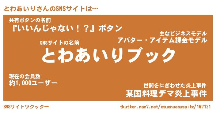 | ヘコむあだ名 | 『とわもー』『牛乳』『とわぷりん』 |