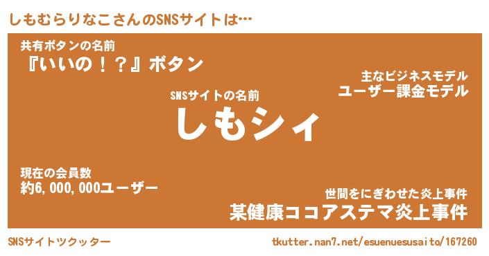 | ヘコむあだ名 | 『しもにー』『なまこ酢』 |