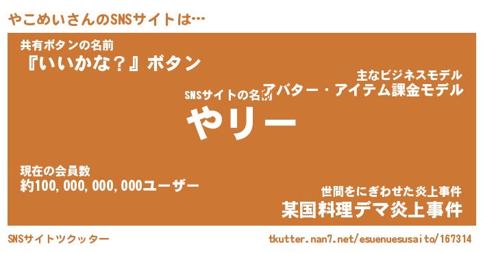 | ファンタジー風あだ名 | 『ヤコフェル』『エターナルヤコメイー』 |