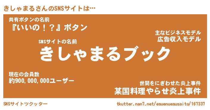 | 男性向けラノベタイトル風あだ名 | 『キシャマルアートオンライン』 |