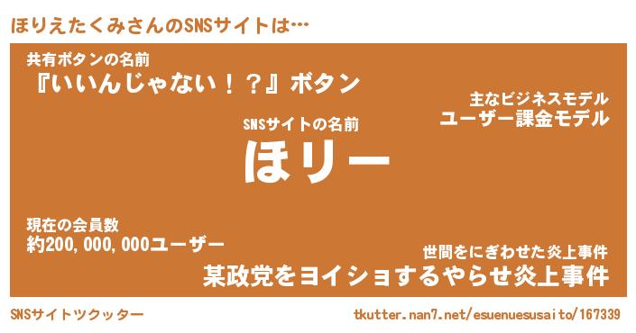 | ヘコむあだ名 | 『ほりにー』『豆乳』『ほりっ子』 |
