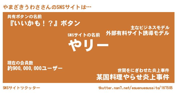 | 肩書あだ名 | 『やまざきうわさCEO』 |