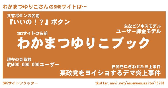| 肩書あだ名 | 『わかまつゆりこ御曹司』 |