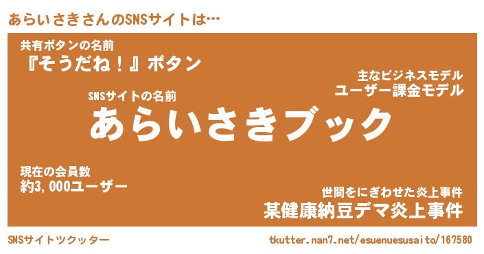 | ヘコむあだ名 | 『あらもー』『なまこ酢』『あらっぺ』 |