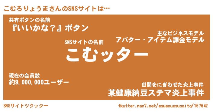 | 肩書あだ名 | 『こむろりょうま御曹司』 |