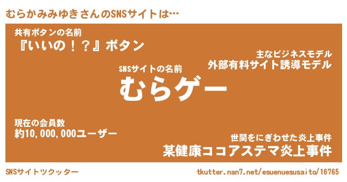 | 伝説のあだ名 | 『伝説のスナイパーむらかみみゆき』 |