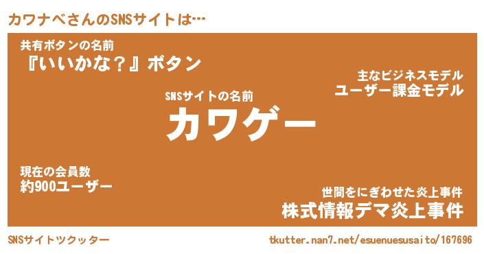 | ファンタジー風あだ名 | 『カワフェル』『エターナルカワナベー』 |