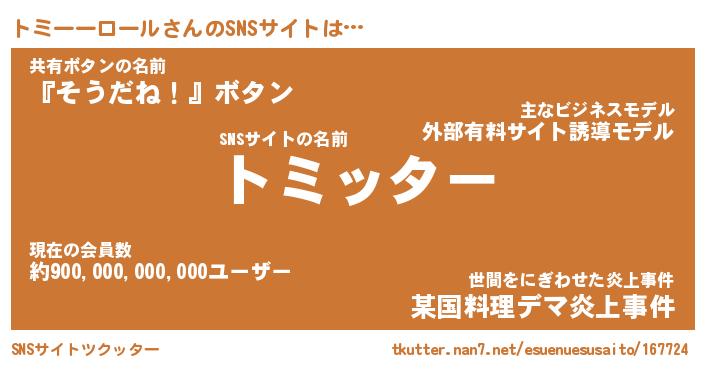 | 男性向けラノベタイトル風あだ名 | 『トミーーロールアートオンライン』 |