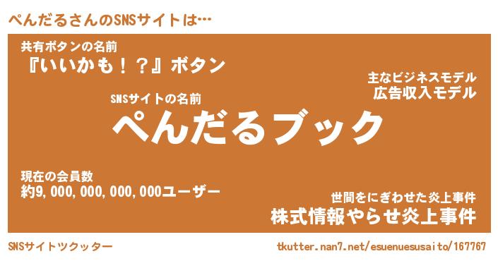 | 意味不明あだ名 | 『ペロリンぺんだる』『永久保存ぺんだる』 |