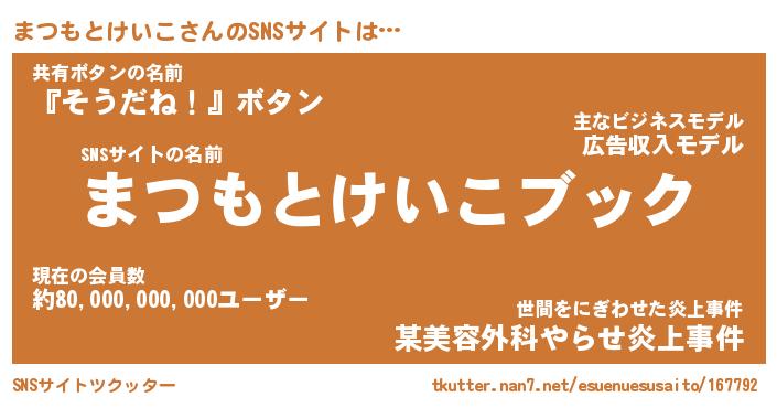 | 肩書あだ名 | 『まつもとけいこCEO』 |