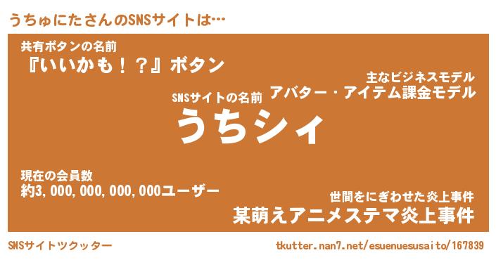 | 胡散臭い通販商品みたいなあだ名 | 『必ず成功するブレスレット…その名も「うちゅにた」』 |