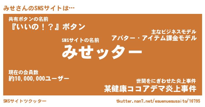 | ヘコむあだ名 | 『みせにゅー』『酢こんぶ』 |