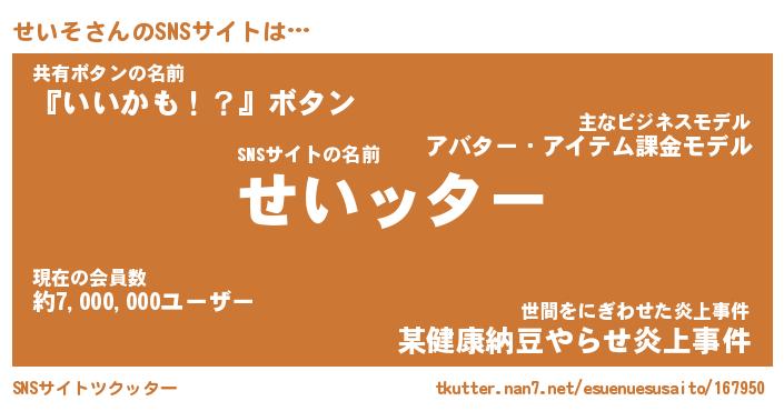 | ヘコむあだ名 | 『せいにー』『なまこ酢』『せいっぺ』 |