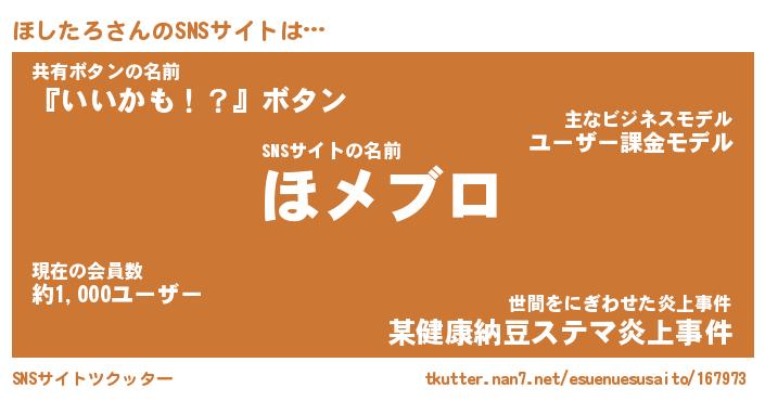 | ヘコむあだ名 | 『ほしにー』『なまこ酢』『ほしお』 |