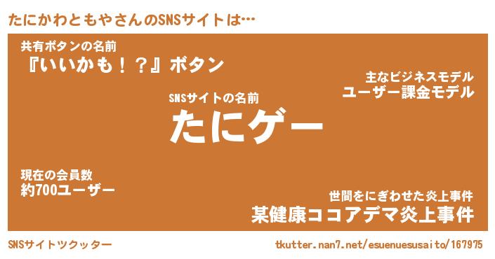 | 肩書あだ名 | 『たにかわともや御曹司』 |