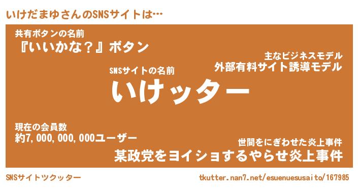 | 胡散臭い通販商品みたいなあだ名 | 『億万長者になれる水晶球…その名も「いけだまゆ」』 |
