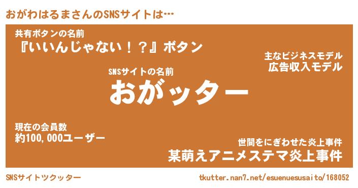 | 伝説のあだ名 | 『封印されしスナイパーおがわはるま』 |
