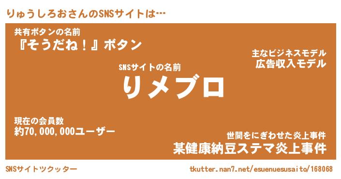 | 男性向けラノベタイトル風あだ名 | 『リュウシロオアートオンライン』 |