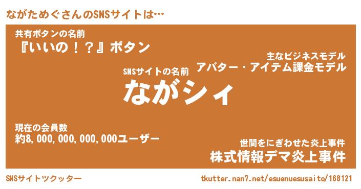 | 胡散臭い通販商品みたいなあだ名 | 『必ず成功する霊験あらたかなお札…その名も「ながためぐ」』 |