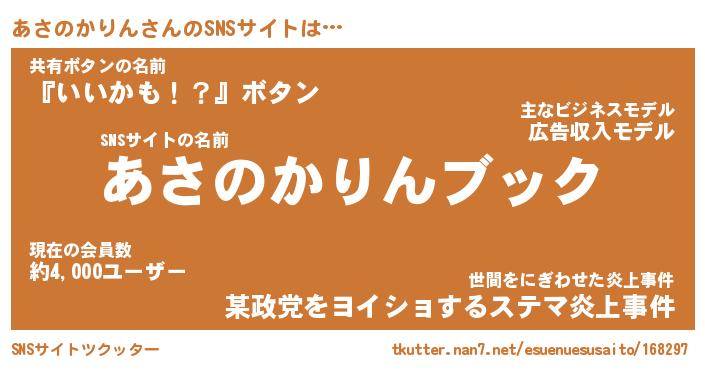 | 胡散臭い通販商品みたいなあだ名 | 『億万長者になれる霊験あらたかなお札…その名も「あさのかりん」』 |
